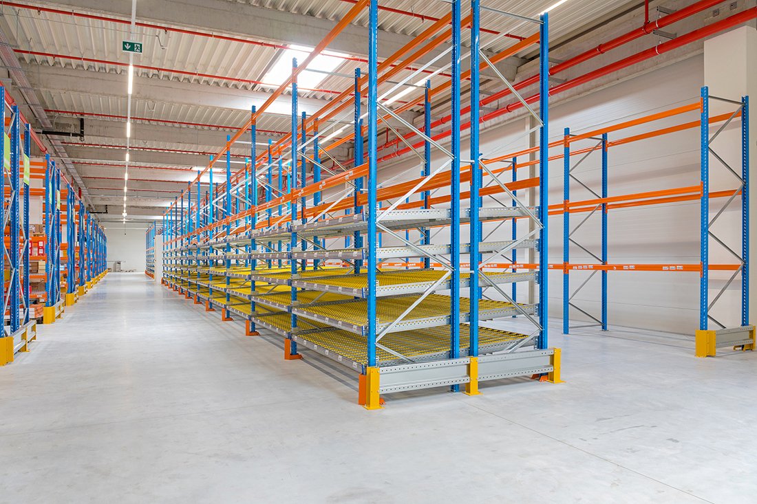 By relying on the sliding and inclination of the fluent roller, as well as the gravity of the material itself, automatic material sliding can be achieved. The goods are placed on the roller from the upper end of the sloping slide, and the goods automatically slide down with the help of gravity. One channel is used for inventory and the other channel is used for pickup. Can achieve first in, first out, one replenishment and multiple picking.